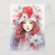 Un ramo gorra de flores rojas, rosas y de marfil en su gorra de punto, este lindo hada de Navidades le desea Feliz Navidad