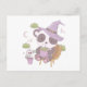 Postal Festiva Halloween Super Cute Panda Bruja y luna creciente