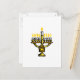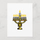 Menorá dorada con Estrella de David. Las llamas deletrean Hanukkah.