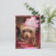 Esta pequeña yorquesa sabe exactamente lo que lleva puesto el domingo de Pascua. Diviértete personalizando esta adorable cachorro Yorkie usando su postal gorra rosa con su propio pie de foto o borra el texto y disfruta sólo la foto. También puede cambiar el color de la parte posterior de la tarjeta cuando edite.