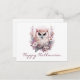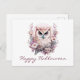Postal Festiva Hermosa búho Floral Happy Halloween