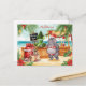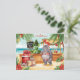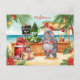 Send warm holiday cheer straight from the beach with this charming Hippo Christmas Cocktail Party Greeting Card. Designed in bright modern watercolor, the card features a festive hippo wearing a poinsettia-patterned bikini and Santa hat, standing beside a tropical cocktail bar on a sunny beach.