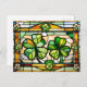 Postal Festiva Hoja de trébol afortunada de vidrio manchado de Sa