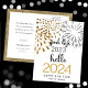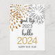 Postal Festiva Hola 2025 Oro Purpurina Fuegos artificiales Año Nu