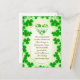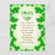 Visual Elements: The card features numerous green shamrocks, including a heart shape made of shamrocks near the top center. The overall color scheme is green and gold.