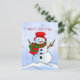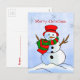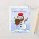 Postal Festiva Hombre de nieve personalizado sobre nieve y copos