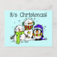 Postal Festiva Hombres de nieve y pingüinos son Navidades