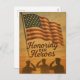 Rindan tributo a los valientes hombres y mujeres que sirvieron con esta poderosa tarjeta postal del Día de la Memoria, con una bandera y siluetas norteamericanas ondeando a los soldados bajo las palabras "honrando a nuestros héroes". Con cálidos tonos vintage e imágenes patrióticas, esta tarjeta postal es perfecta para franquear gratitud, compartir recuerdos o decorar para un evento o tributo en el Día de la Conmemoración.