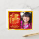 “Happy New Year” faux gold foil typography in both Chinese and English, a stunning visual of a graphic faux gold foil horse, flowers and cloud, your names, and the photo of your choice overlay a traditional Asian red circle pattern and brushed faux gold foil border on the front. On the back are a red cloud and star visual, your personal message and return address. Feel the warmth and joy of the holiday season whenever you send this stylish yet modern, personalized 2026 Chinese Lunar New Year of the Horse photo postcard. Make sure someone special receives this greeting!