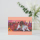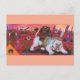 Postal Festiva Ilustracion acuarela Niño monta leona blanca