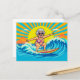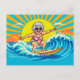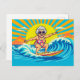 Abuela divertida surfeando una gran ola con gafas de sol, disfrutando el entusiasmo y la libertad de la jubilación. Ilustración humorística brillante y colorida que muestra energía, aventura y estilo de vida de personas mayores con un toque.