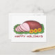 Tarjeta postal con una ilustración original de un delicioso jamón glaseado en rodajas, con FELIZ FIESTAS en una fuente divertida. ¡Perfecto para enviar saludos de Navidad!