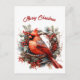 Postal Festiva Ilustracion del Cardenal Rojo navidades