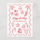 Postal Festiva Ilustracion esgrimido moderno Doodle rojo y blanco