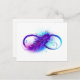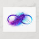 Infinity symbol with a beautiful feather painted in purple and blue bright colors on white background.