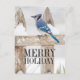 Postal Festiva Jay azul encaramado en la cerca nevada