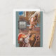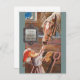 postal de navidades inspirada en un tomte (aprox. brownie) que le da pan a un caballo. Si se le trata bien, el tomte nórdico puede ser de ayuda para la gente de la granja y le gustan particularmente los caballos. Foto original de la pintora e ilustradora sueca Jenny Nyström, Tomte matar häst i stall (Brownie alimentando un caballo en un establo), aproximadamente 1945. Personalice la postal de Navidades escribiendo sobre el texto de ejemplo.