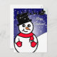 A snowman out in the night as Santa passes over to deliver toys to the kids of the world.