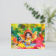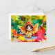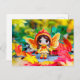 Postal Festiva Joyosa muñeca cochetada con hojas de otoño