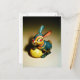 Postal Festiva juguete de conejo y huevo amarillo de pascua