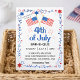 Estrellas y rayas transparentes de moda rojas, blancas y azules 4 de julio fuegos artificiales BBQ Cartas de invitación de partido acrílico. Un diseño festivo patriótico para una invitación del 4 de julio con Banderas Americanas es perfecto para un fiesta de barbacoa en el patio trasero este Día de la Independencia. Puede cambiar el texto/fuente/colores.