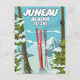 Afiche de viaje de Juneau Alaska al esquí - Impresión de las vacaciones de esquí alpino.