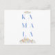 Kamala Harris. Flores. Postales de vacaciones en blanco y azul