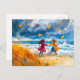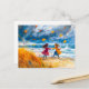 Postal Festiva La playa de Stormy del otoño con pintura de acuare