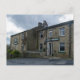 Una vista diurna de The Fountain Head Inn en Halifax, Inglaterra, un pub tradicional de piedra con múltiples ventanas y un letrero prominente que muestra su nombre. El edificio parece desgastado por el tiempo con algunas plantas trepadoras en su fachada, y un pequeño área empedrada está frente a la entrada. Esta imagen se puede editar y transferir a múltiples productos de su elección.