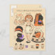Reproducción adorable de muñecas de papel vintage en tarjeta postal para un Halloween divertido.