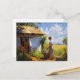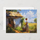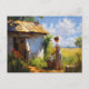 Instantánea casera de la vida rural con una mujer que se encarga de su lavandería frente a una pintoresca cabaña