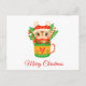 Postal Festiva Lechuza bebé en una taza de té con caña de candy