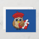 Postal Festiva Lechuza con Beret Rojo y Caja Corazón
