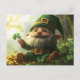 Postal Festiva Leprechaun de gnomo lindo con rocas de champú y tr
