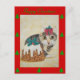 Este lindo gatito de tabby gris Navidad lleva un arco rojo muy bonito con una navidad en la cabeza y se ve muy contenta con ella mientras lame la crema de pudín de los Navidades de sus patas con su lengua rosada. Sus grandes ojos de pussycat muestran lo mucho que está disfrutando de sus navidades especiales. En la frontera y alrededor de la linda imagen de gatito hay pequeños árboles de navidad verdes y el saludo "Navidades felices". Creo que esta linda postal de temporada hará una maravillosa manada para cualquiera, es apropiada para niños y adultos por igual, creo que amigos, familia, colegas y todos los amantes del gato querrán recibir su propia postal original de navidades kitten durante la temporada festiva.
