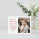 Una tarjeta para acompañar esas fotos descaradas y francas que muestran a tus hijos comportándose mal o en un momento travieso, esta tarjeta de Navidades de fotos de vacaciones usa una redacción graciosa para insinuar que les gustaría estar en la lista de Santa a pesar de las tendencias traviesas. Los colores clásicos de rojo y blanco se acentúan con un respaldo rojo y texto fácil de personalizar para una carta verdaderamente única que sus amigos y familia disfrutarán de recibir.