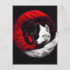 Un diseño hiperrealista que muestra a un lobo yin-yang rojo y blanco con el equilibrio dinámico y los detalles intensos de la poderosa mirada del lobo.