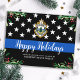 Envía saludos navideños felices a amigos, empresarios, compañeros de los departamentos de aplicación de la ley y a tu comunidad con esta tarjeta única de Navidades del Departamento de Policía de la Línea Azul - Bandera estadounidense con los colores de la bandera de la policía, negro y azul moderno con hojas y bayas huecas. Personaliza con el logo, mensaje y departamento del departamento de policía . DERECHOS RESERVADOS © 2020 Judy Burrows, Black Dog Art - Todos los derechos reservados. Postal de vacaciones delgada de la línea azul del Personalizado del Departamento de Policía