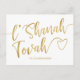 Envía una elegante felicitación de tarjeta postal de Año Nuevo a tu familia y amigos para Rosh Hashaná, el Año Nuevo judío. Este diseño presenta una tipografía de escritura moderna con un falso dorado que dice "L'Shanah Tovah" y debajo el nombre de tu familia para personalizar. La parte posterior de la tarjeta postal tiene una felicitación y firma para que tú la personalices. Diseñado por la artista ©Susan Coffey.