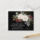 Inspiradora cita escritura Navidades postcard representa una elegante acuarela floral con rosas blancas, bayas rojas, flores doradas y vegetación sobre un fondo negro. Presenta la Biblia Verse Luke 2:14, Canción de los Ángeles: "Gloria a Dios en el más alto y en la tierra, paz, buena voluntad hacia los hombres".