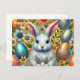 Aquí hay una linda postal de la Saludo de Pascua que incluye un lindo conejo, huevos de Pascua y flores. Fue creado usando un programa de IA generado por computadora llamado Bing y mi imaginación. Es una tarjeta de precio razonable para saludar a cualquiera, particularmente a los niños, el día de Pascua.