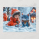 Postal Festiva Magnífico Día del Invierno con Chica y gato