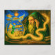 Postal Festiva Mago de bola de cristal en visión pintada al óleo