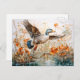 Postal Festiva Mallard volando sobre el estanque con flores