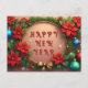 Hermoso marco decorativo con tema navideño adornado con vibrantes poinsettias, adornos coloridos y acentos festivos, perfecto para diseños estacionales y celebraciones navideñas.