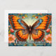 Esta postal única presenta el ilustracion de una mariposa en reposo y algunas flores de primavera florecientes. Se le anima a agregar su propio texto único y direcciones al reverso del saludo como desee.