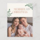 Agradable y fresco navidad de vacaciones saludando postal. Este diseño moderno y juvenil presenta un conjunto de fuentes contemporáneas, un texto de foto y personalizable en la parte posterior de la tarjeta. El fondo, tanto en la parte delantera como en la trasera, es blanco con toques de vegetación joven y fresca. Personalizar y personalización para convertirlo en tu propio. CONSEJO: si desea que la parte posterior de la tarjeta no tenga texto, deje el cuadro de texto vacío.