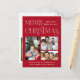 Elegante postal de vacaciones rojas con "Feliz Navidad" escrito en elegante tipografía blanca vintage, "feliz año nuevo" y un saludo en moderna tipografía blanca, tres de tus fotos favoritas y tu nombre. En la parte de atrás, agregue una cuarta foto y personalice su mensaje de temporada a su familia y amigos.