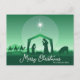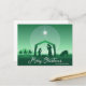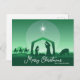 Postal Festiva Merry Christmas Nativity Scene Green Religious