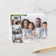 Tarjeta postal de vacaciones modernas con tu foto repartida con una tira cinematográfica de tres fotos cuadradas, "Feliz Navidad" en un guión festivo y tu nombre en una tipografía simple. Añade una quinta foto y tu mensaje estacional personalizado en la parte posterior.
